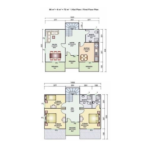 Çift Katlı Prefabrik Ev (144m²) Planı